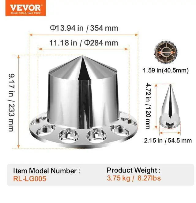 Color: Bright Silver,Item Model Number: RL-LG005,Compatible Rims: 10-hole 20in / 508mm, 22.5in / 571.5mm, 24.5in / 622.3mm, 11.25in (285.75mm) Bolt Circle,Product Weight: 3.75 kg / 8.3 lbs,Product Dimensions: 354x233 mm / 13.94x9.17 inch,Main Material: ABS