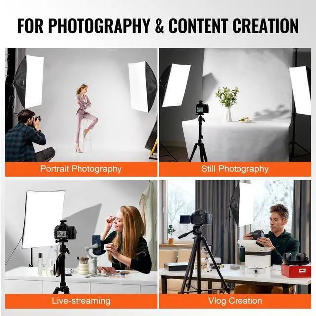 VEVOR Softbox Lighting Kit 20 in x 28 in 30W 5500K LED Bulbs Adjustable Stand