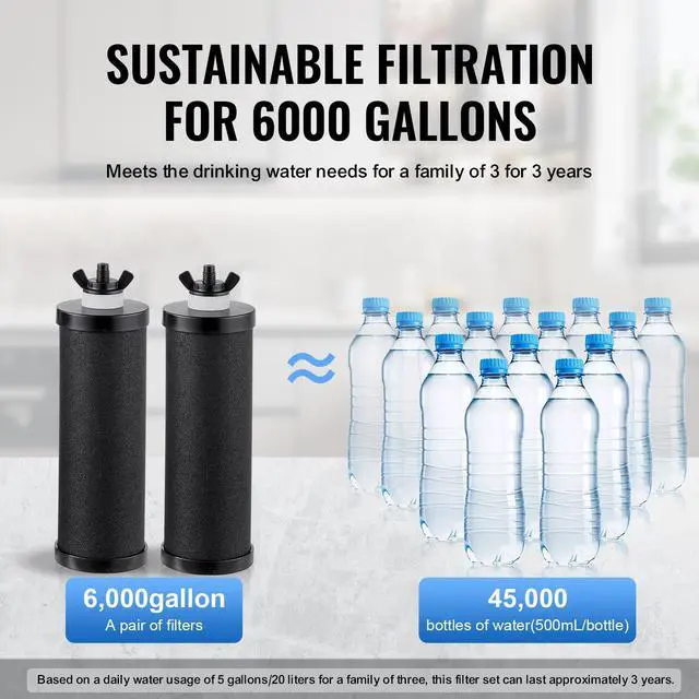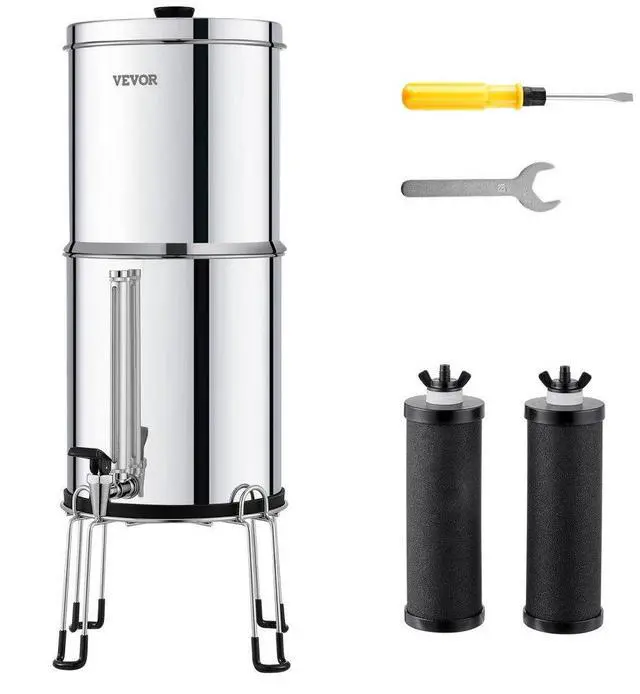 • VEVOR 2.25G Gravity-fed Water Filter Countertop System Stainless Steel 2 Filters