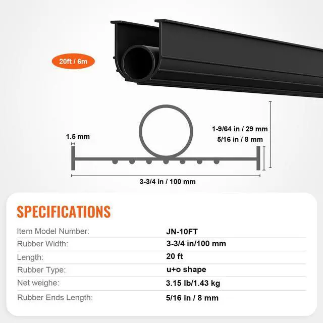 Door Bottom Seal Roll Size: 11.81 x 11.81 x 3.94 in/ 30 x 30 x 10 cm,Length: 20 ft,Seal Strip Roll Sizes: 12.6 x 12.6 x 3.94 in/ 32 x 32 x 10 cm,Color: Black,Item Model Number: DTMH1925-MXBTMH1591-20ft,Net Weight: 20.76 lb/9.42 kg,Main Material: PVC