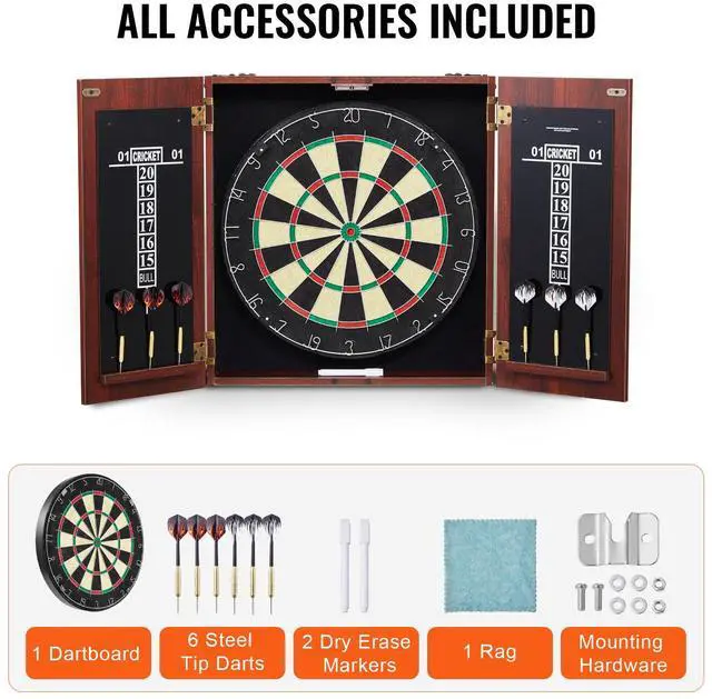 VEVOR Dartboard and Cabinet Set Official Size Complete Accessory Steel Tip Dart