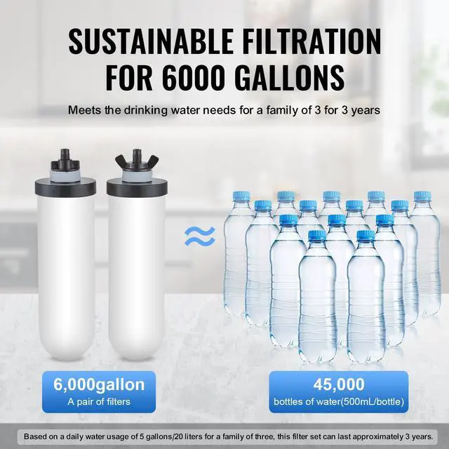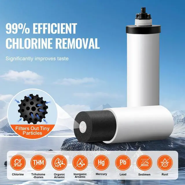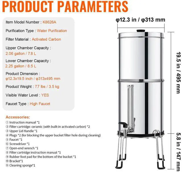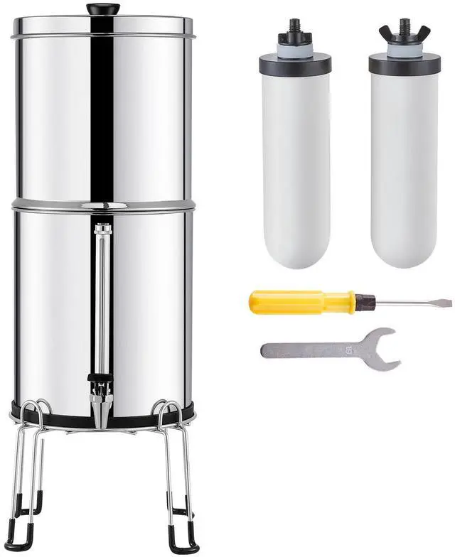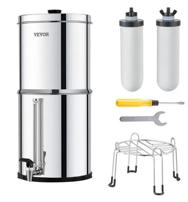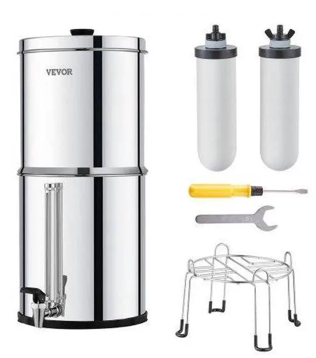 • VEVOR 2.25G Gravity-fed Water Filter Countertop System Stainless Steel 2 Filters