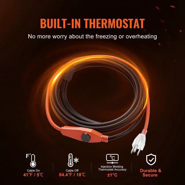Pipe Heating Cable 3FT 7W/FT Heat Tape for Pipes with Built-in Thermostat
