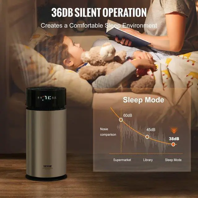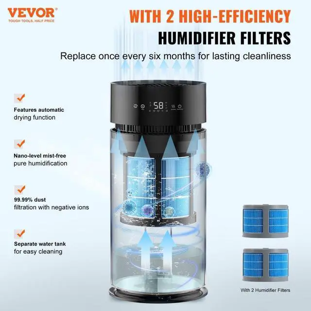 VEVOR Evaporative Humidifier for Whole House up to 270 sqft, 10L(2.64G) Large Smart Cool Moisture Humidifier and Air Purifier,3-Speeds & 1-14h Timer,Premium Filter Quiet Sleep Mode for Bedroom