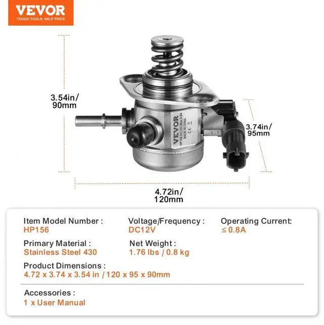 Primary Material: Stainless Steel 430,Voltage/Frequency: DC12V,Item Model Number: HP156,Product Dimensions: 4.72 x 3.74 x 3.54 in / 120 x 95 x 90mm,Net Weight: 1.76 lbs / 0.8 kg,Operating Current: 0.8A