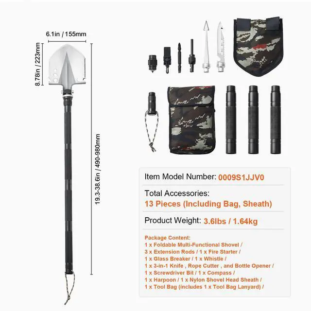 1 x Foldable Multi-Functional Shovel