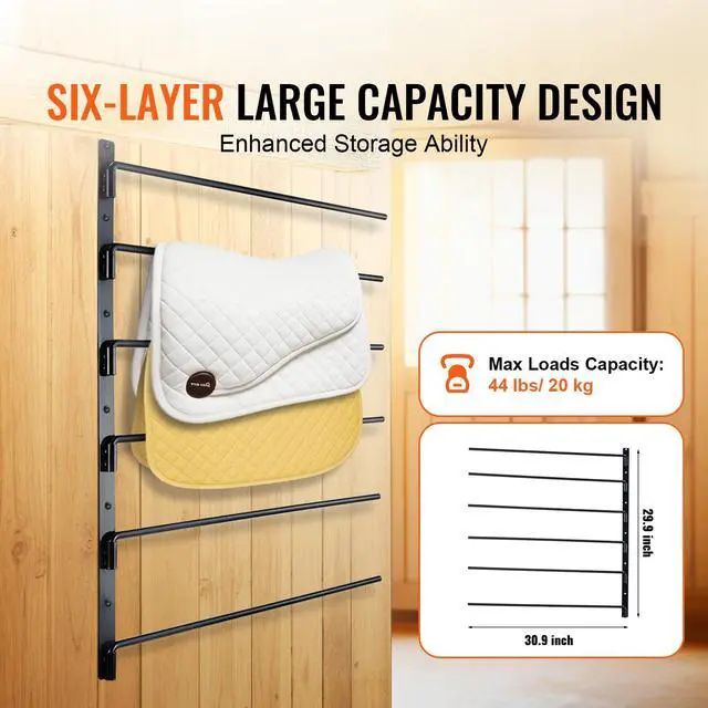 VEVOR Wall Mounted Saddle Rack Six Tiers English & Western Horse Saddle Stand