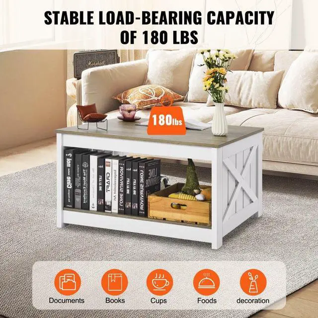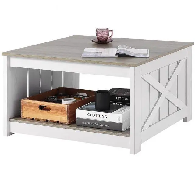 31.5" Farmhouse Coffee Table Square Table with Open Storage Compartment