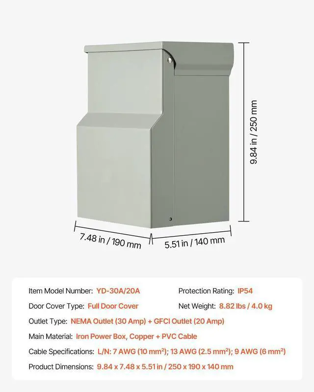 Outlet Type: NEMA Outlet (30 Amp) + GFCI Outlet (20 Amp)