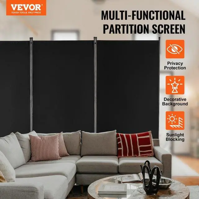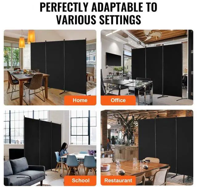 VEVOR Room Divider, 3 Panel Room Divider, Folding Privacy Screen and Portable Partition Divider for Room Separation, Freestanding Room Partitions for Office, Bedroom, Living Room, Black