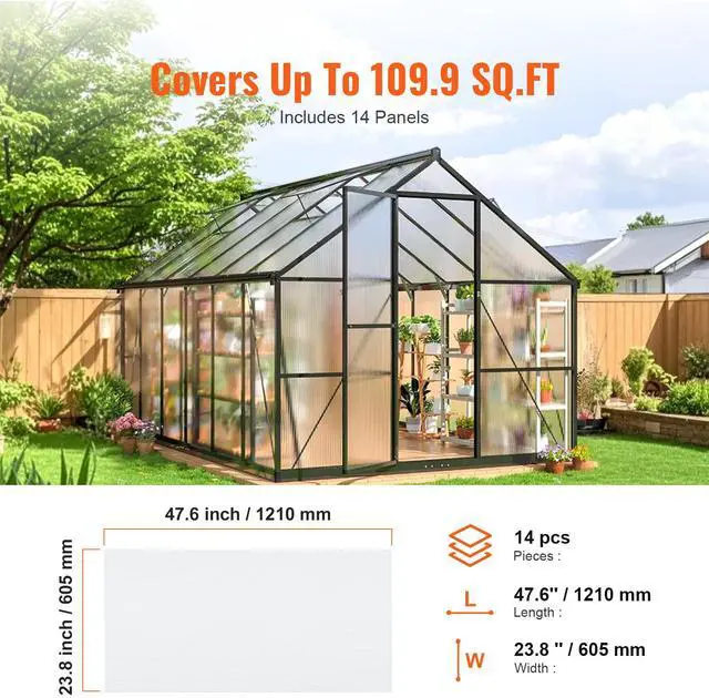 14 Pack Polycarbonate Greenhouse Panels 2' X 4' X 0.32'' Roof Sheets