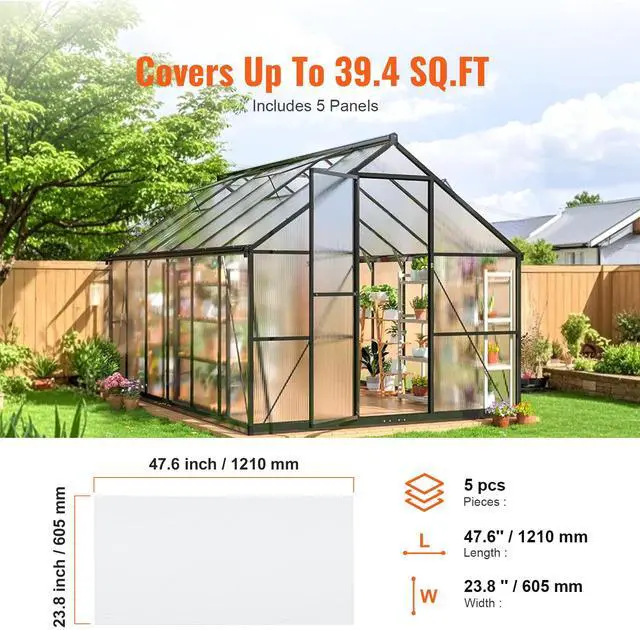 • VEVOR 5 Pack Polycarbonate Greenhouse Panels 2' X 4' X 0.32'' Roof Sheets