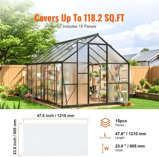 15 Pack Polycarbonate Greenhouse Panels 2' X 4' X 0.24'' Roof Sheets