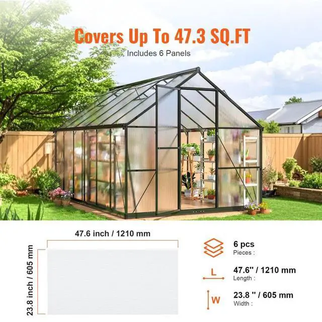 • VEVOR 6 Pack Polycarbonate Greenhouse Panels 2' X 4' X 0.16'' Roof Sheets