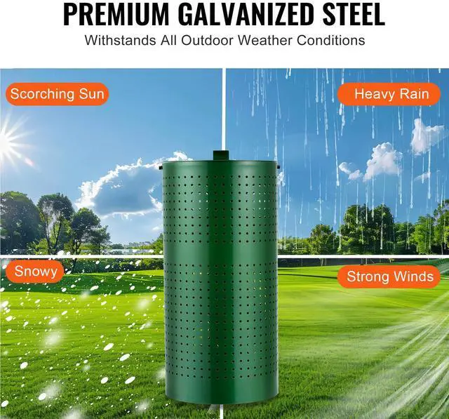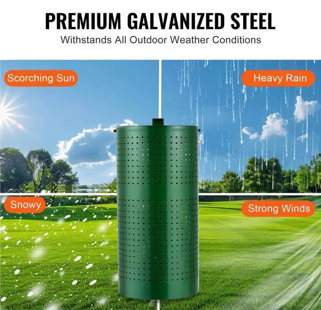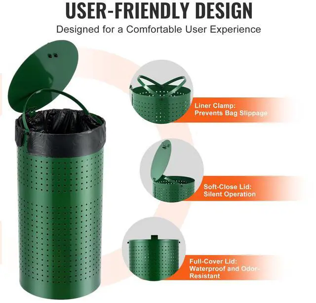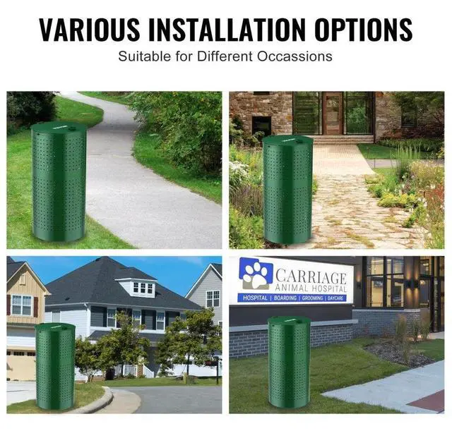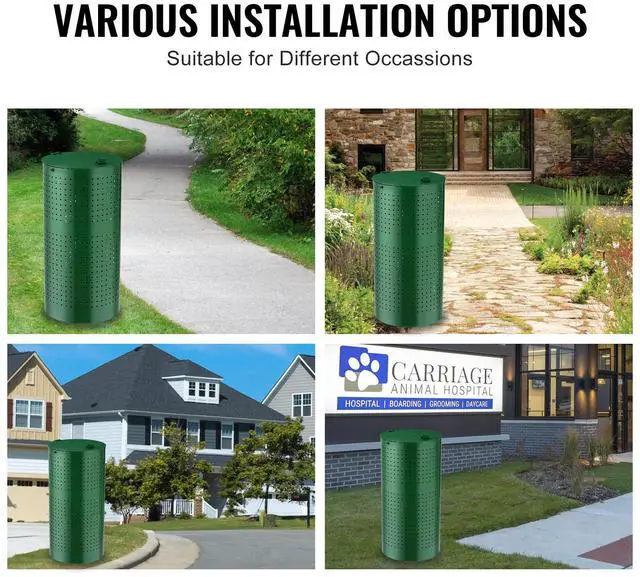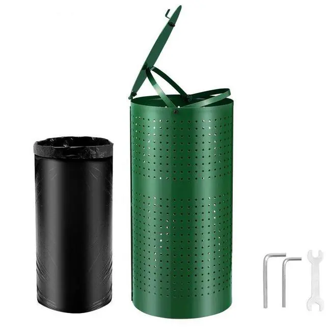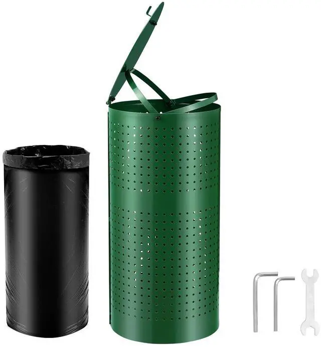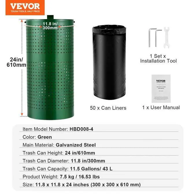 Size: 11.8 x 11.8 x 24 inches (300 x 300 x 610 mm),Color: Green,Trash Can Capacity: 11.5 Gallons/ 43 L,Item Model Number: HBD008-4,Product Weight: 8.5 kg /18.74 lbs,Trash Can Height: 24 in,Main Material: Galvanized Steel,Trash Can Diameter: 11.8 in