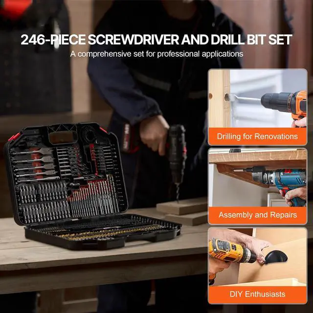 VEVOR Drill Bit Set 246PCS Screwdriver Bit Set with Carrying Case Multi-purpose