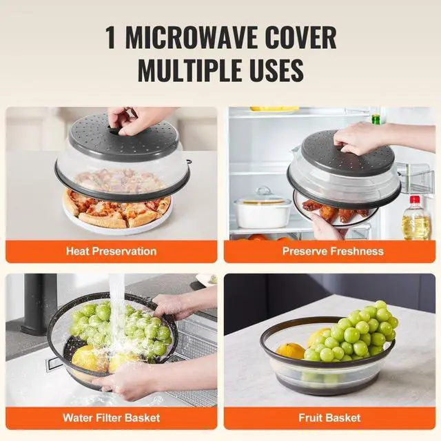 VEVOR 2PCS Microwave Splatter Covers 10.4" Collapsible Microwave Food Lid 300°F
