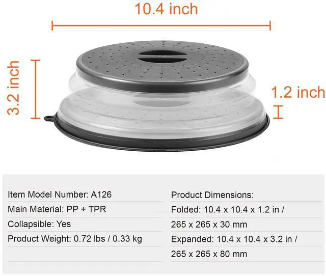 Folded: 10.4 x 10.4 x 1.2 in / 265 x 265 x 30 mm,Item Model Number: A126,Product Weight: 0.72 lbs / 0.33 kg,Collapsible: Yes,Product Dimensions:,Main Material: PP + TPR,Expanded: 10.4 x 10.4 x 3.2 in / 265 x 265 x 80 mm