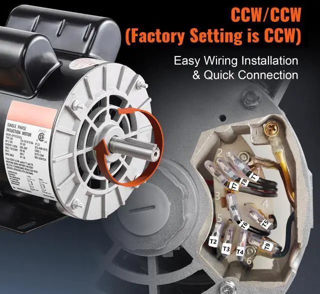 2HP SPL Air Compressor Motor 115/230V 20/10A 3450RPM 56 Frame CW/CCW Rotation