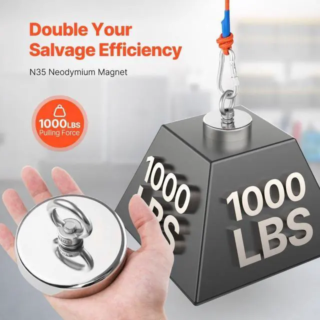 Fishing Magnet Super Strong Heavy Duty Rare Earth Neodymium Pull Force 1000 LBS