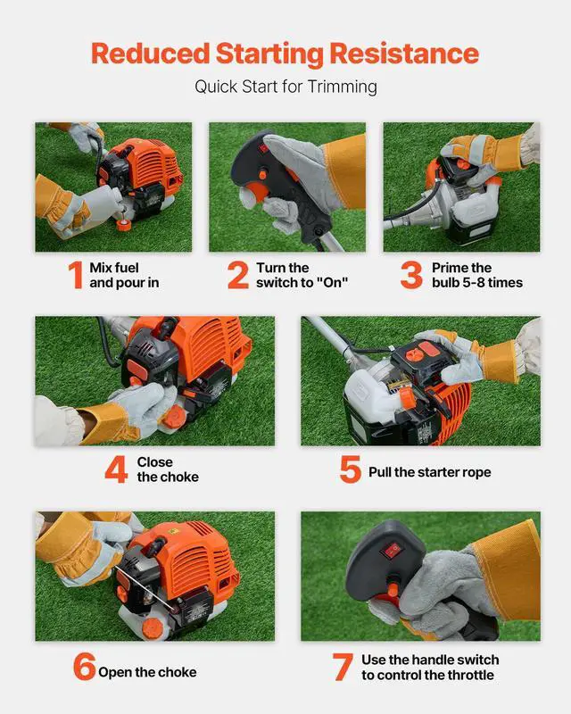VEVOR String Trimmer, 42.7CC 2-Stroke, Gas Powered Weed Wacker, 16.9" Cordless Grass Trimmer, Multi-Functional Lawn Edger with Shoulder Strap & 3T Blade, Weed Eater for Quick Grass Cleaning