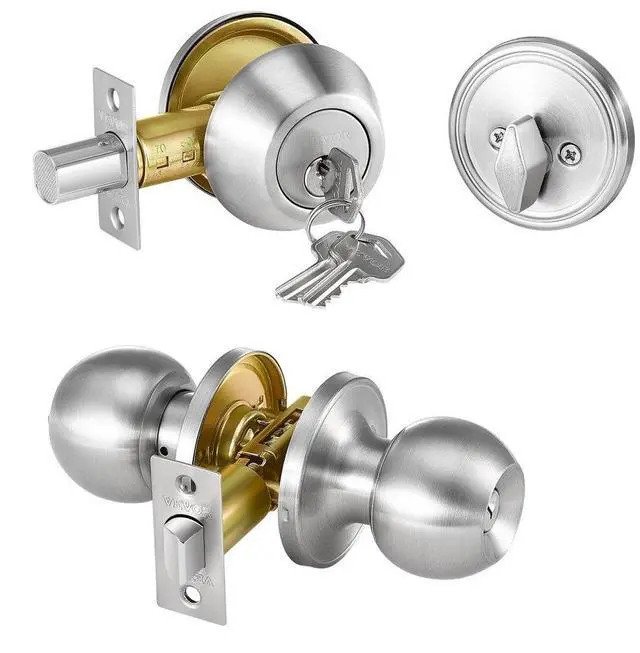 Entry Door Knob and Deadbolt Set Satin Nickel Single Cylinder Deadbolt