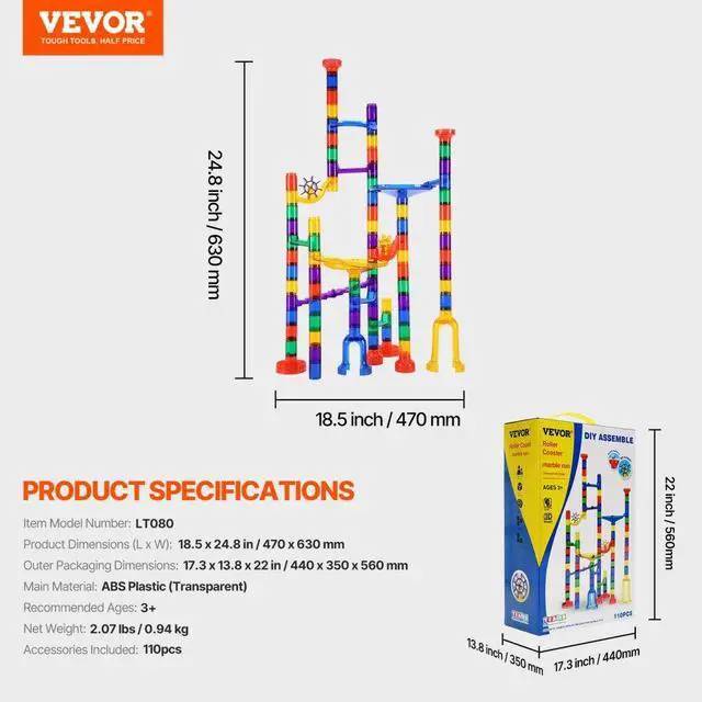 Marble Run Set 110 PCS Building STEM Toy Educational Learning Gift for Kids