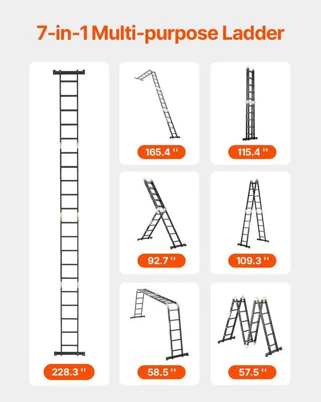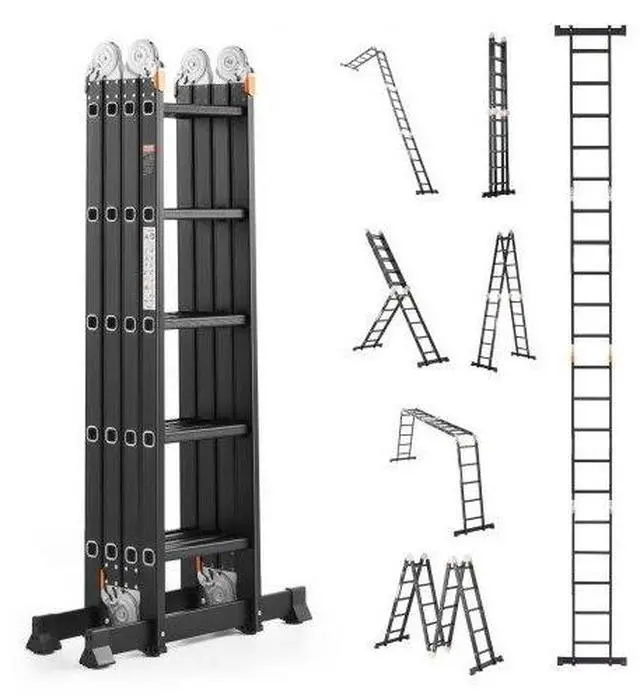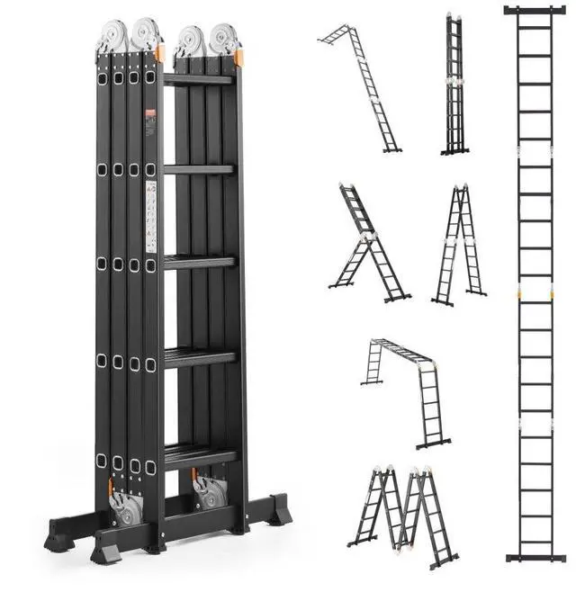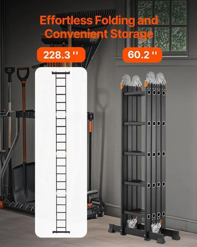 Multi-Purpose Folding Ladder 7-in-1 5 Step 19ft Reach Height for Work