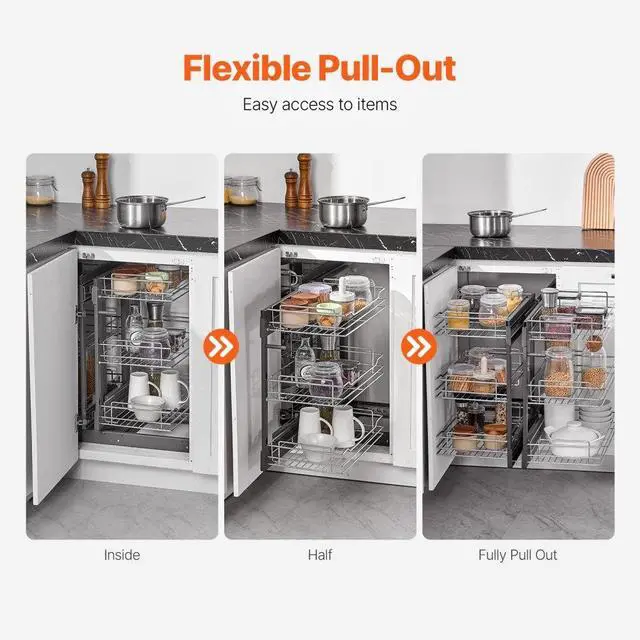 3 Tier 6 Shelf Blind Corner Pull Out Organizer Chrome Kitchen Cabinet Basket