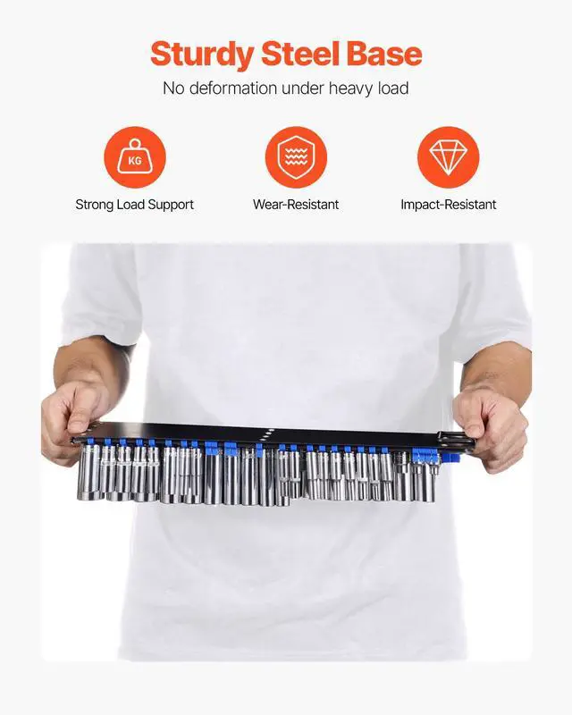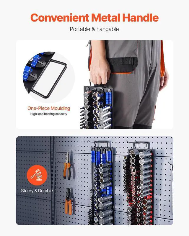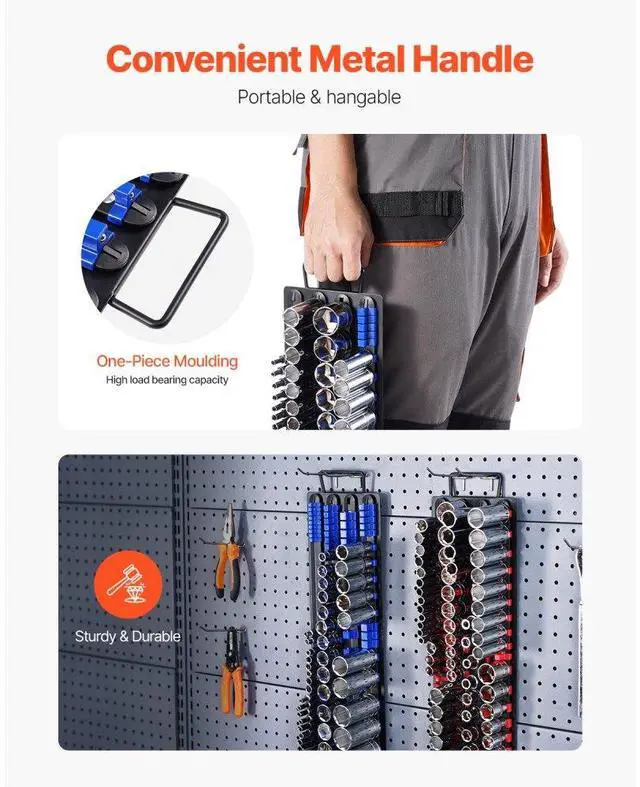 Newly Upgraded! Portable Socket Organizer Set 2PCS 160 Clips Steel Socket Tray Metric/SAE