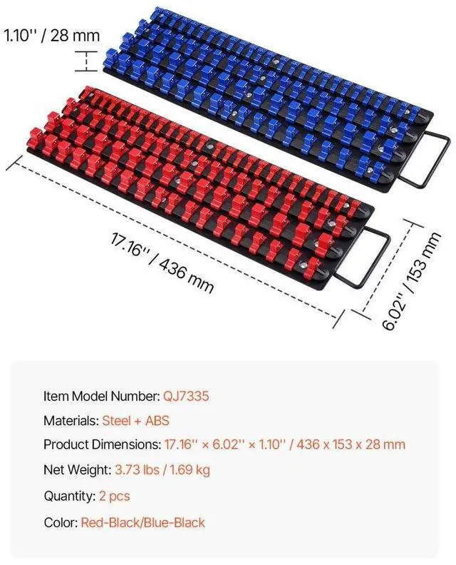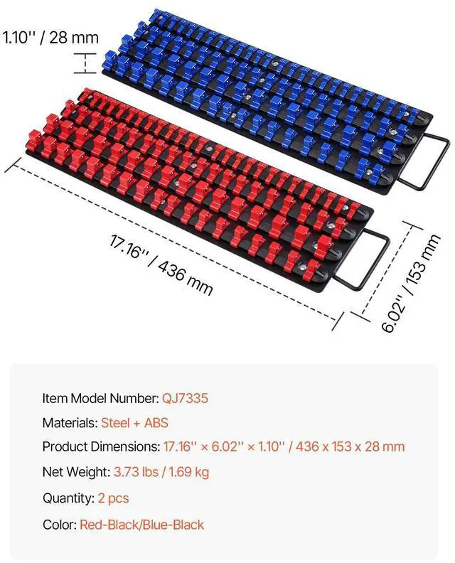 Materials: Steel + ABS,Color: Red-Black/Blue-Black,Item Model Number: QJ7335,Quantity: 2 pcs,Product Dimensions: 17.16'' × 6.02'' × 1.10'' / 436 x 153 x 28 mm,Net Weight: 3.73 lbs / 1.69 kg