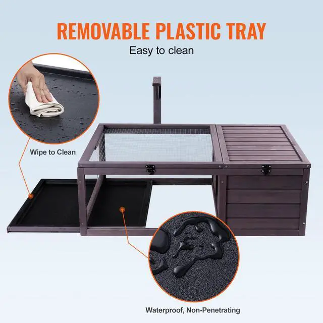 VEVOR Tortoise Habitat Wooden Tortoise House Indoor & Outdoor 2-Room 38x24x13in