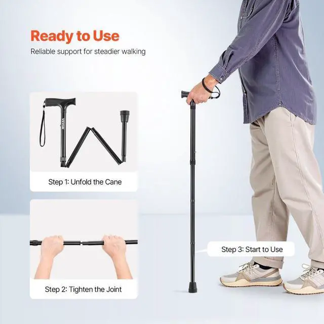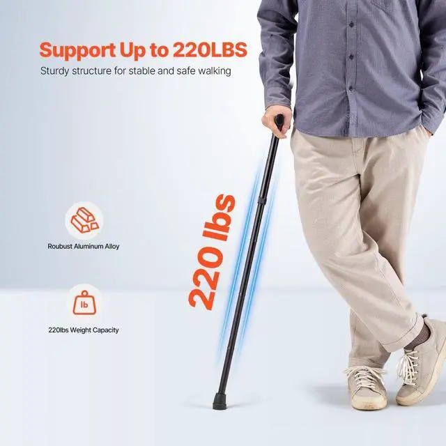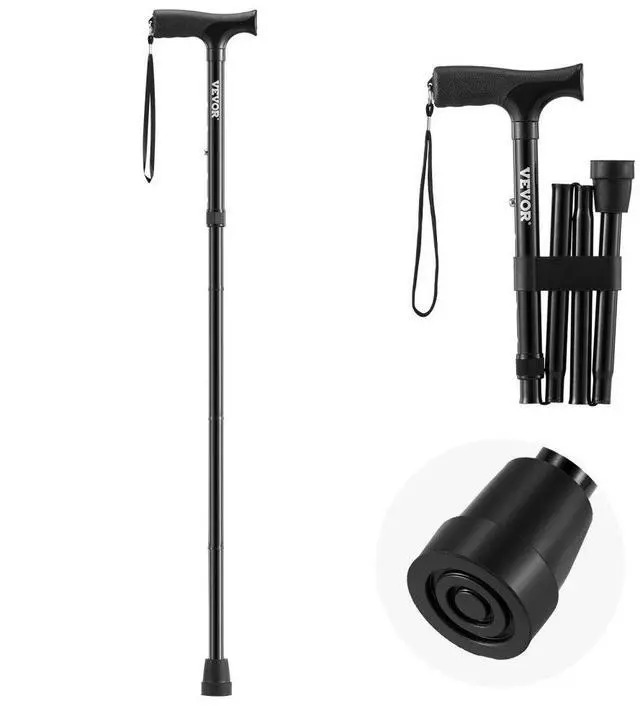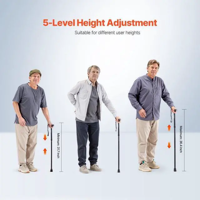 Walking Cane Folding Walking Stick with 5-Level Adjustable Height Anti-Slip Tip