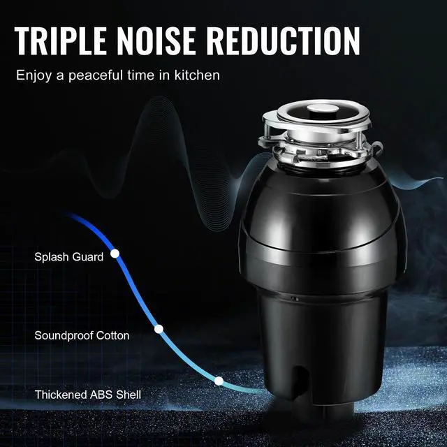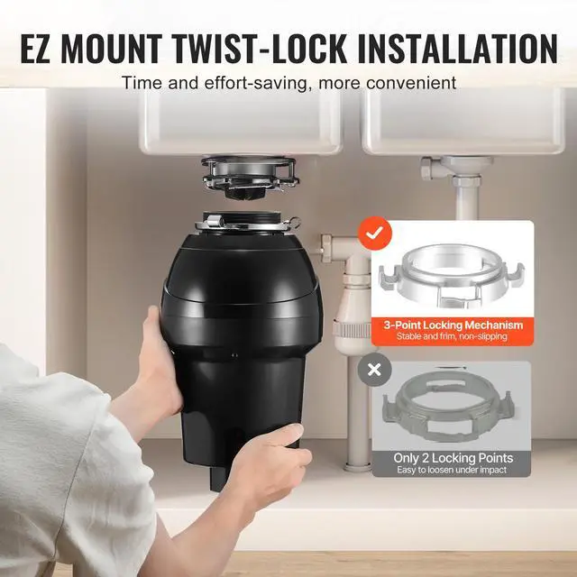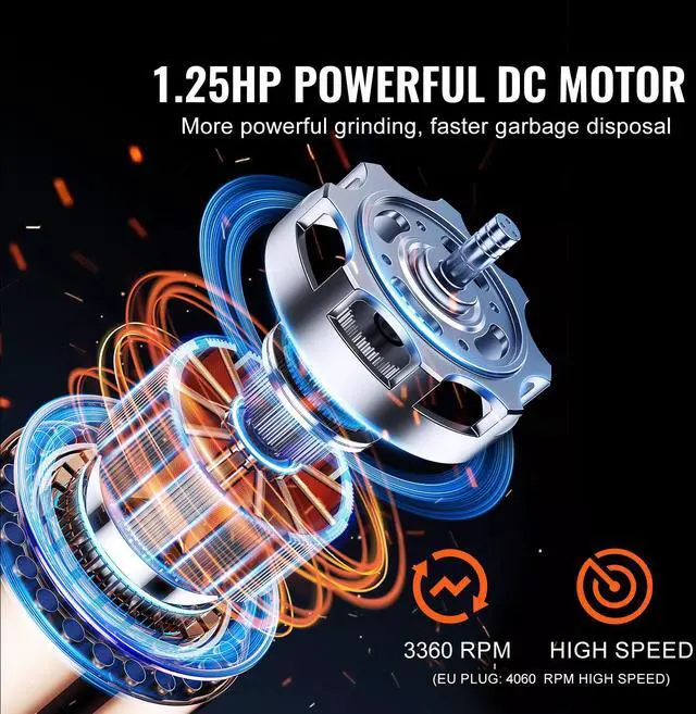 Garbage Disposal 1.25HP Continuous Food Waste Disposer 3360RPM EZ Connect Corded