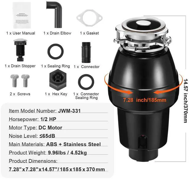 Noise Level: 65 dB,Main Materials: ABS + Stainless Steel,Horsepower: 1/2 HP,Motor Type: DC Motor,Item Model Number: JWM-331,Product Weight: 9.96 lbs / 4.52 kg,Product Dimensions: 7.28" x 7.28" x 14.57" / 185 x 185 x 370 mm