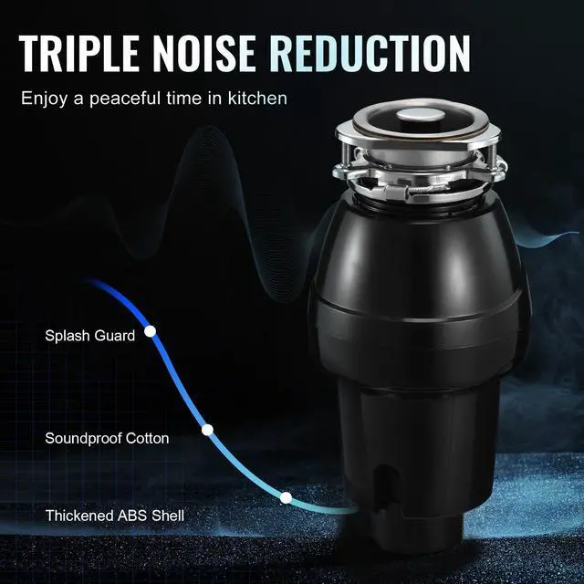 Garbage Disposal 1/2 HP Continuous Food Waste Disposer 3450 RPM 3-Bolt Connect
