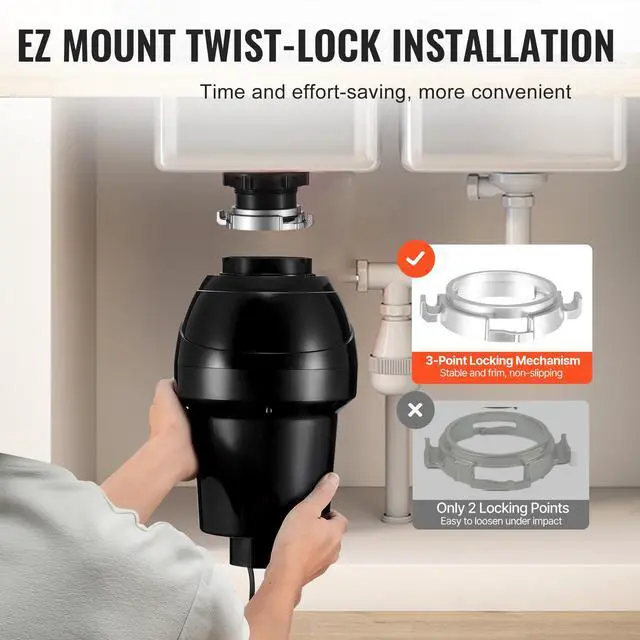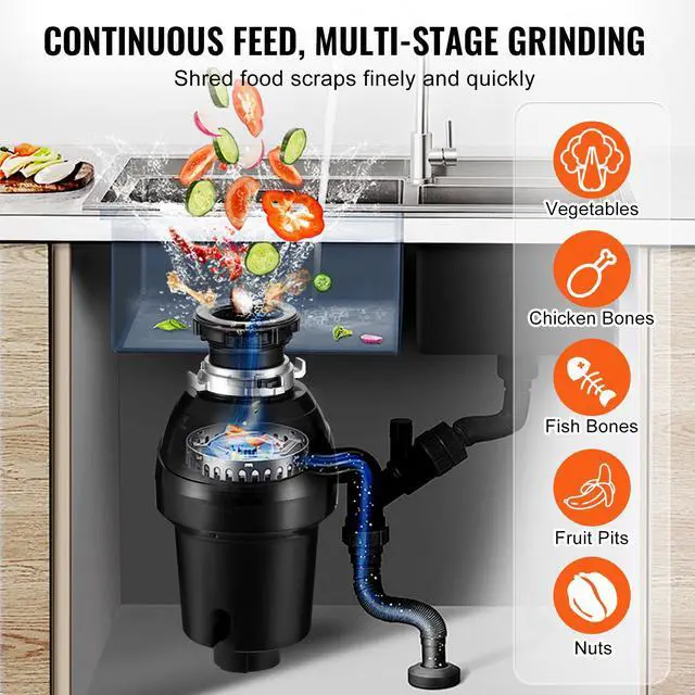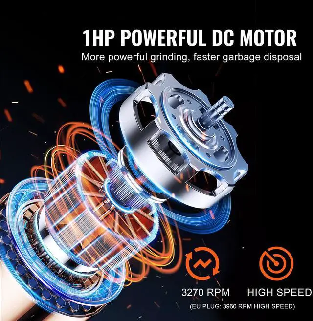 Garbage Disposal 1 HP Continuous Food Waste Disposer 3270 RPM EZ Connect Corded