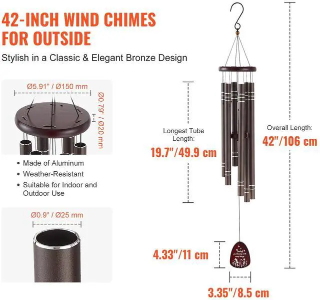 VEVOR Wind Chimes for Outside 42-Inch Aluminum Memorial Deep Tone Wind Chimes