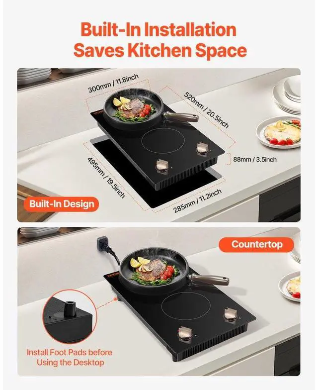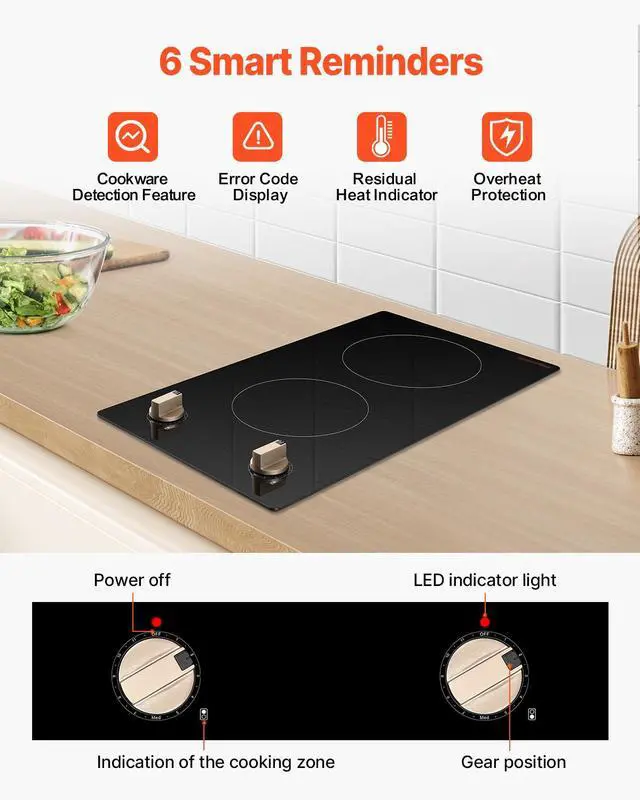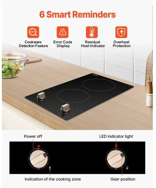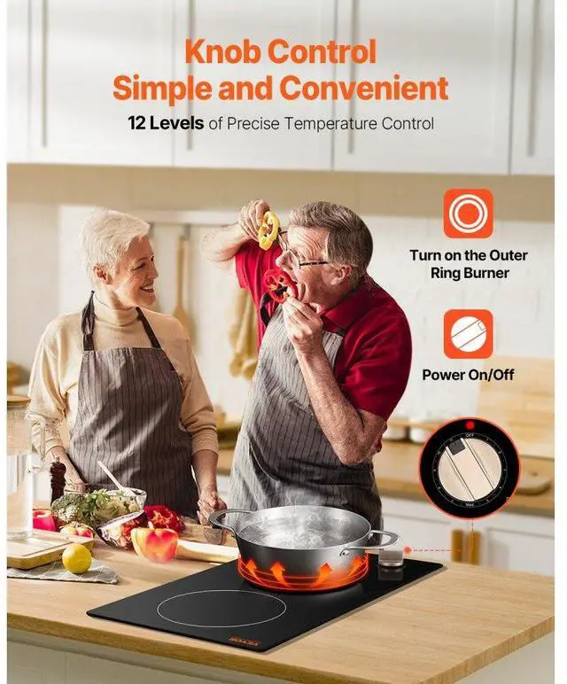 1800W 2 Burner Induction Cooktop Electric Countertop Burner Knob Control