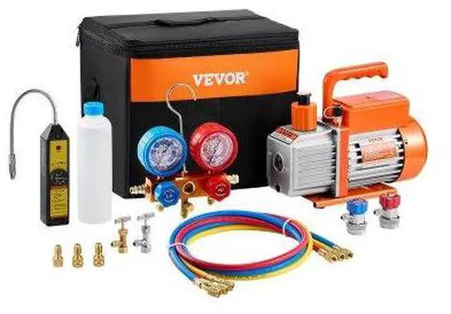 4.5 CFM HVAC Single Stage Rotary Vane Vacuum Pump and Manifold Gauge Kit