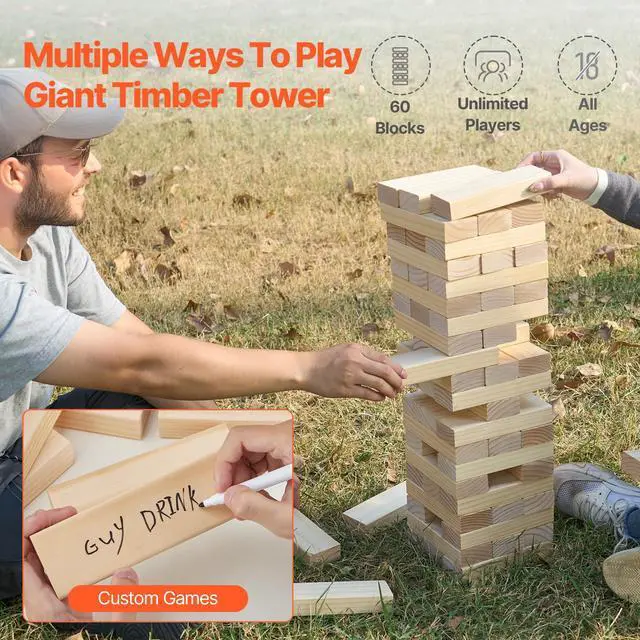 Tumbling Timber Toy 60 Blocks Giant Tumble Tower Blocks Game Pine Wood Box