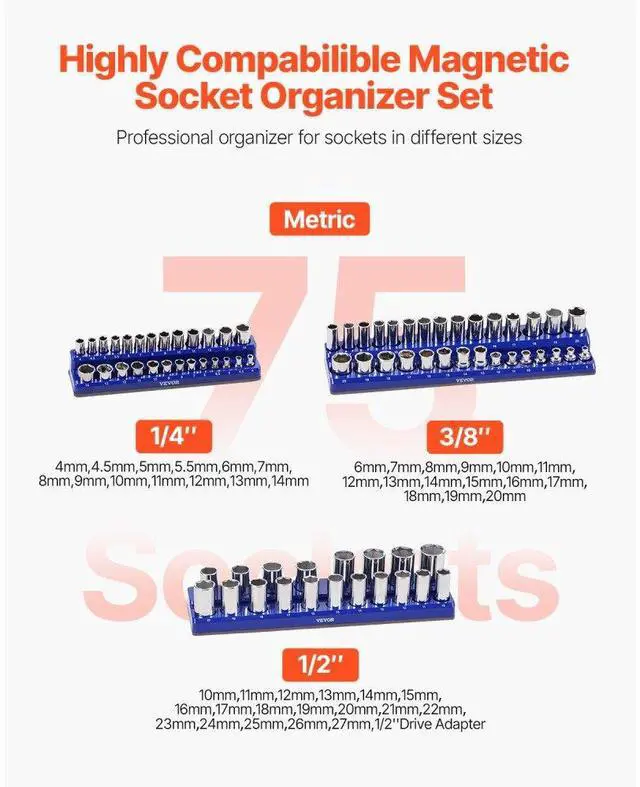 Magnetic Socket Organizer Set 3PCS Magnetic Socket Trays Blue for Metric