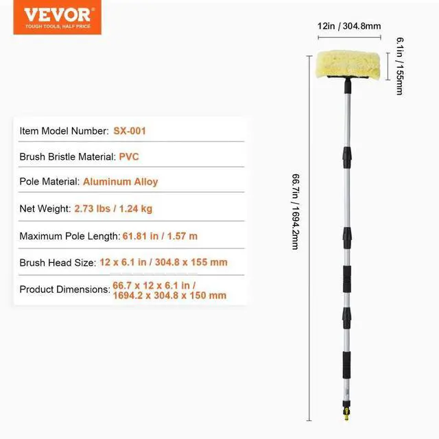 Brush Head Size: 12 x 6.1 in / 304.8 x 155 mm