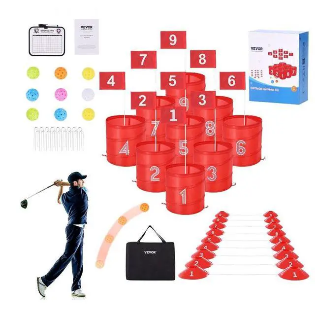 Backyard Golf Game 9 Hole Portable Outdoor Bucket Golf Game for Kids and Adults