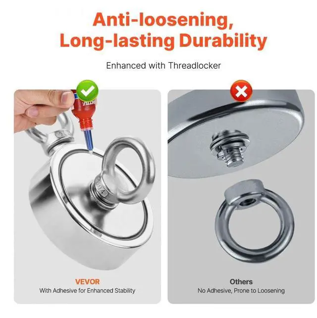 1000 LBS Strong Fishing Magnet Kit Double-Sided Pull Force and Rope Carabiner