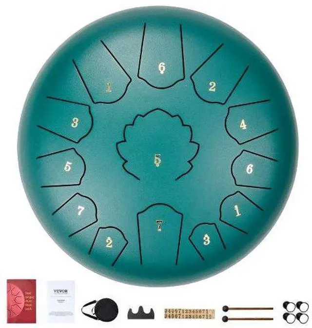 • VEVOR Steel Tongue Drum 12 in 13 Notes Rain Drum for Outside C Major Green