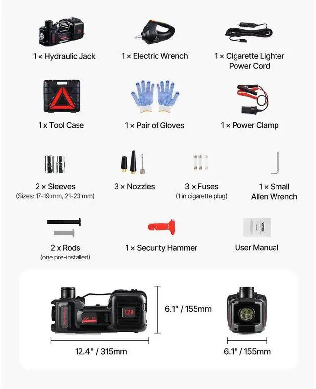 • VEVOR Electric Car Jack 5 Tons /11000 lbs Jack kit with Electric Impact Wrench