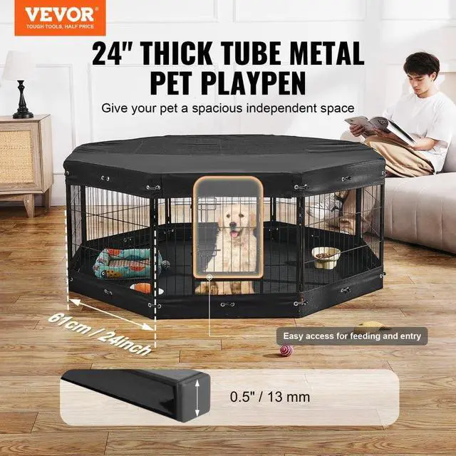 Dog Playpen 8 Panels Foldable Metal Dog Exercise Pen with Cover Pad Bag