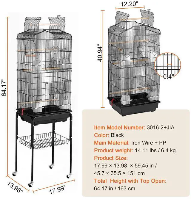 Total Height with Top Open: 163 cm / 64.17 in,Product weight: 6.4kg / 14.11 lbs,Color: Black,Item Model Number: 3016-2+JIA,Main Material: Iron Wire + PP,Product Size: 45.7 x 35.5 x 151 cm / 17.99 x 13.98 x 59.45 in