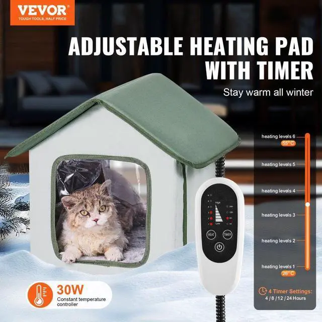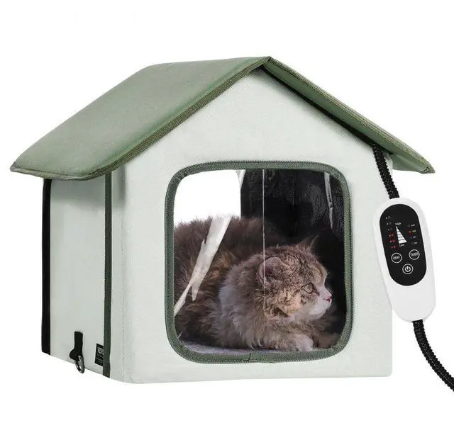 VEVOR Elevated Heated Cat House Outdoor Kitty Shelter with Heated Pad Green (S)